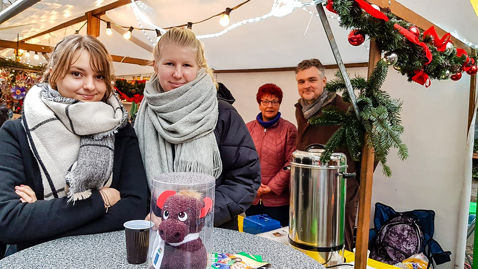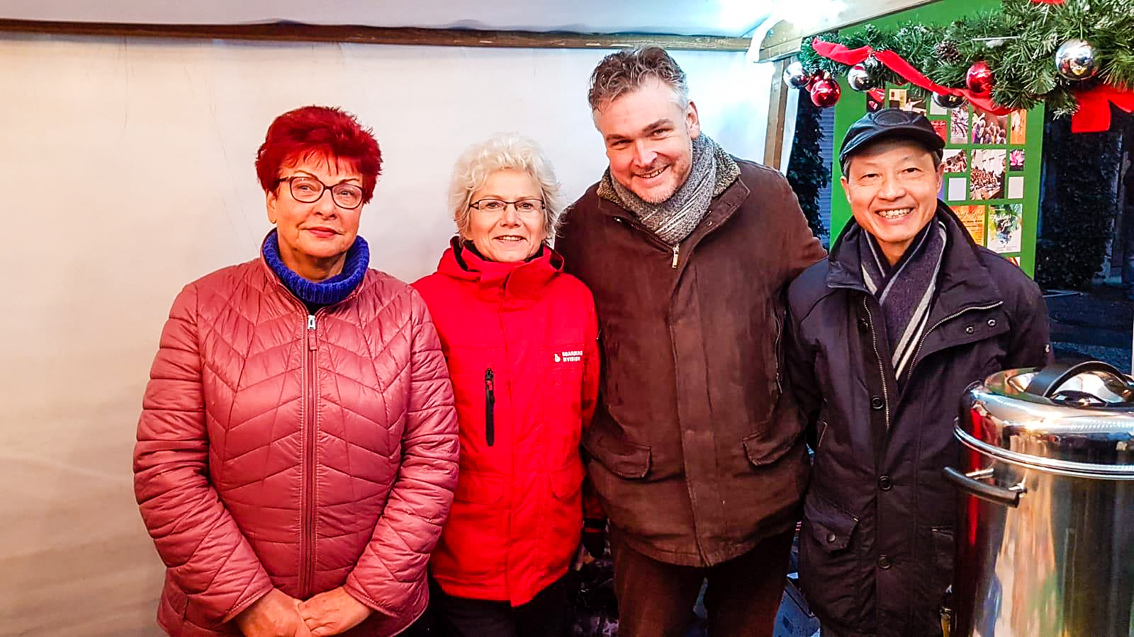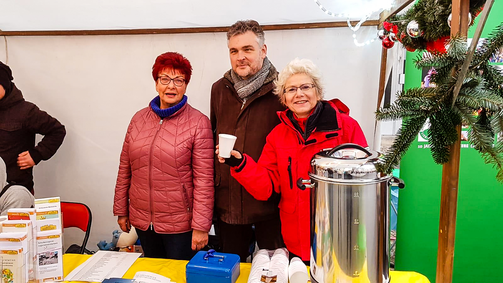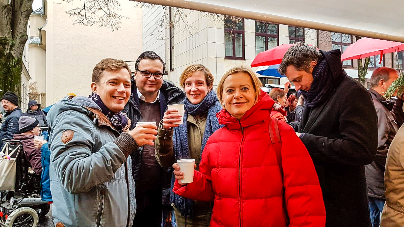 Gefreut haben wir uns über den Besuch von MdB, Dr. Gesine Lötzsch, den Mitgliedern des Abgeordnetenhauses Hendrikje Klein und Sebastian Schlüsselburg sowie des Lichtenberger Bezirksbürgermeisters Michael Grunst am Stand. Auch sie konnten unserem Glühwein nicht widerstehen. Bei dem nasskalten Wetter gerade das richtige zum Aufwärmen.