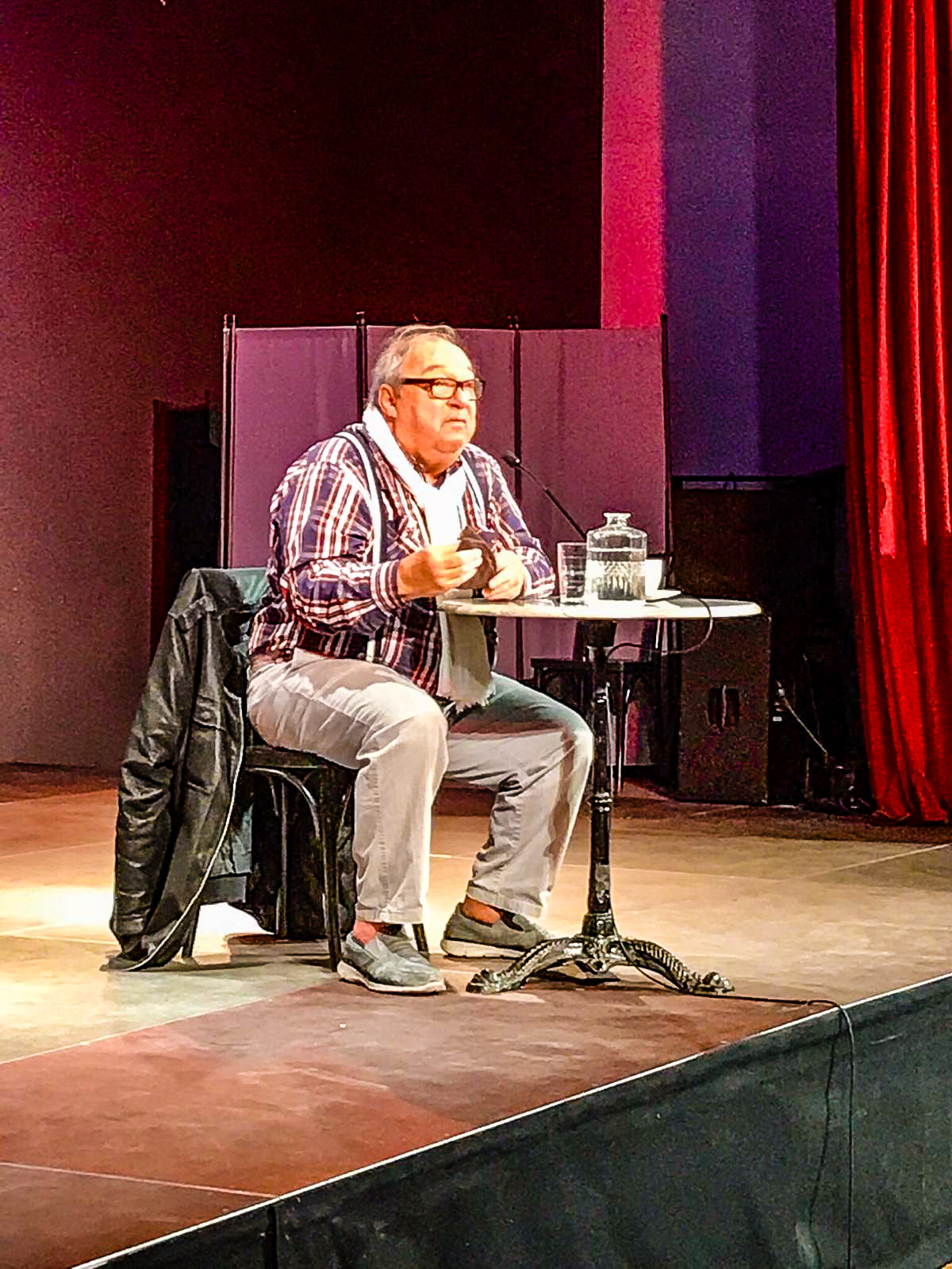 | Mir gefiel außerordentlich, mit welcher Offenheit und Ehrlichkeit er über sein Künstlerleben, das er ja in zwei unterschiedlichen Gesellschaftssystemen ausübte bzw ausübt, berichtete. Das Publikum hörte interessiert zu und stellte eine Menge Fragen, die Jäcki Schwarz gern und geduldig beantwortete. Fotos mit ihm und Autogrammkarten von ihm waren sehr begehrt. Dafür nahm er sich Zeit und freute sich natürlich auch darüber. |