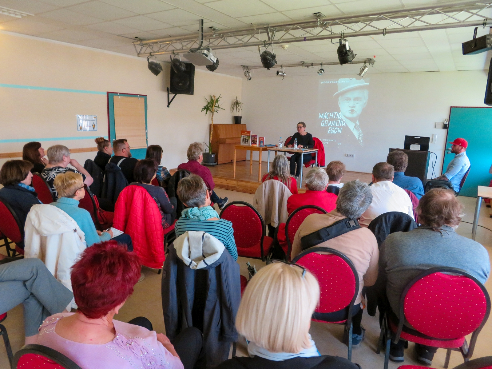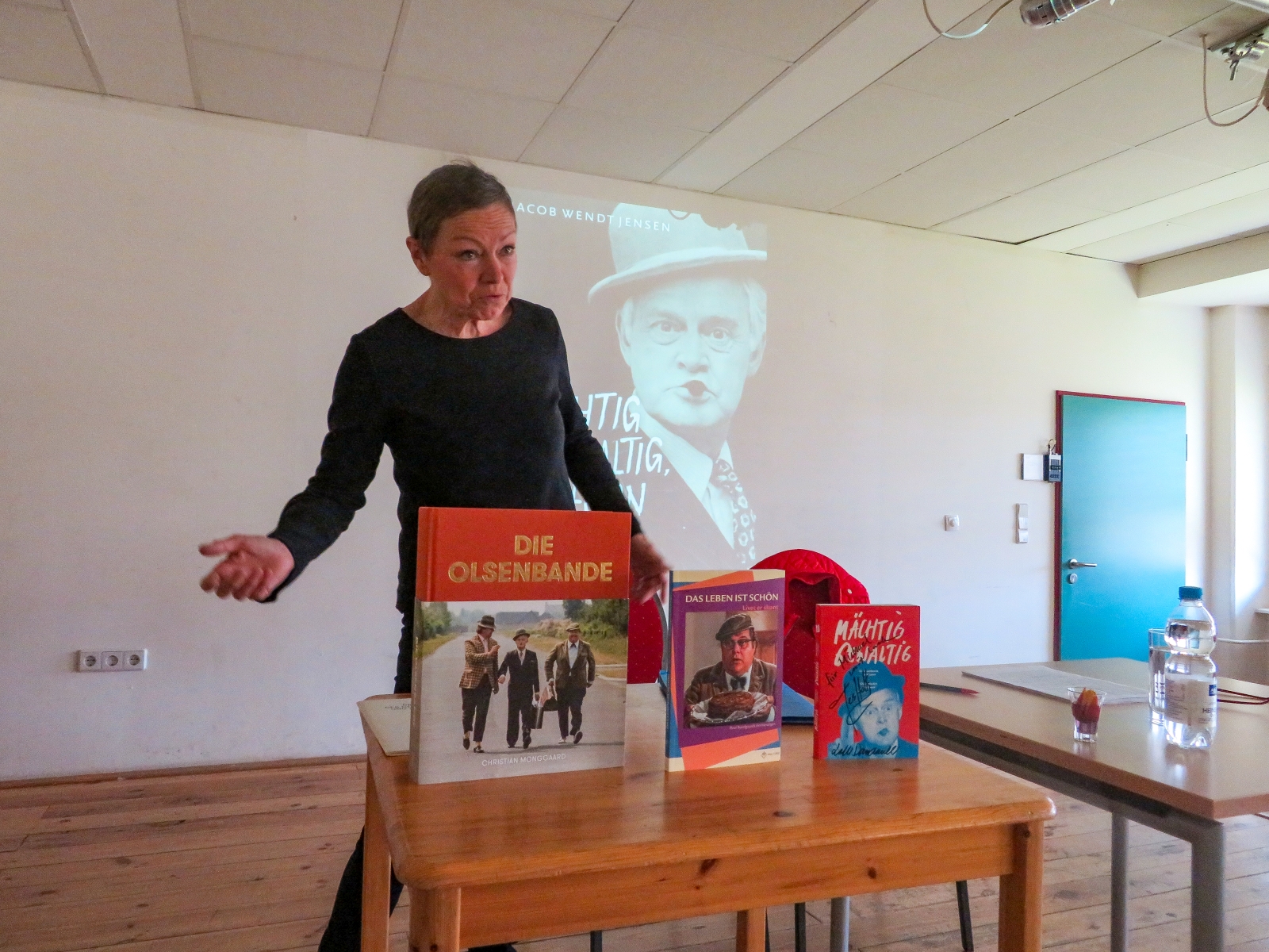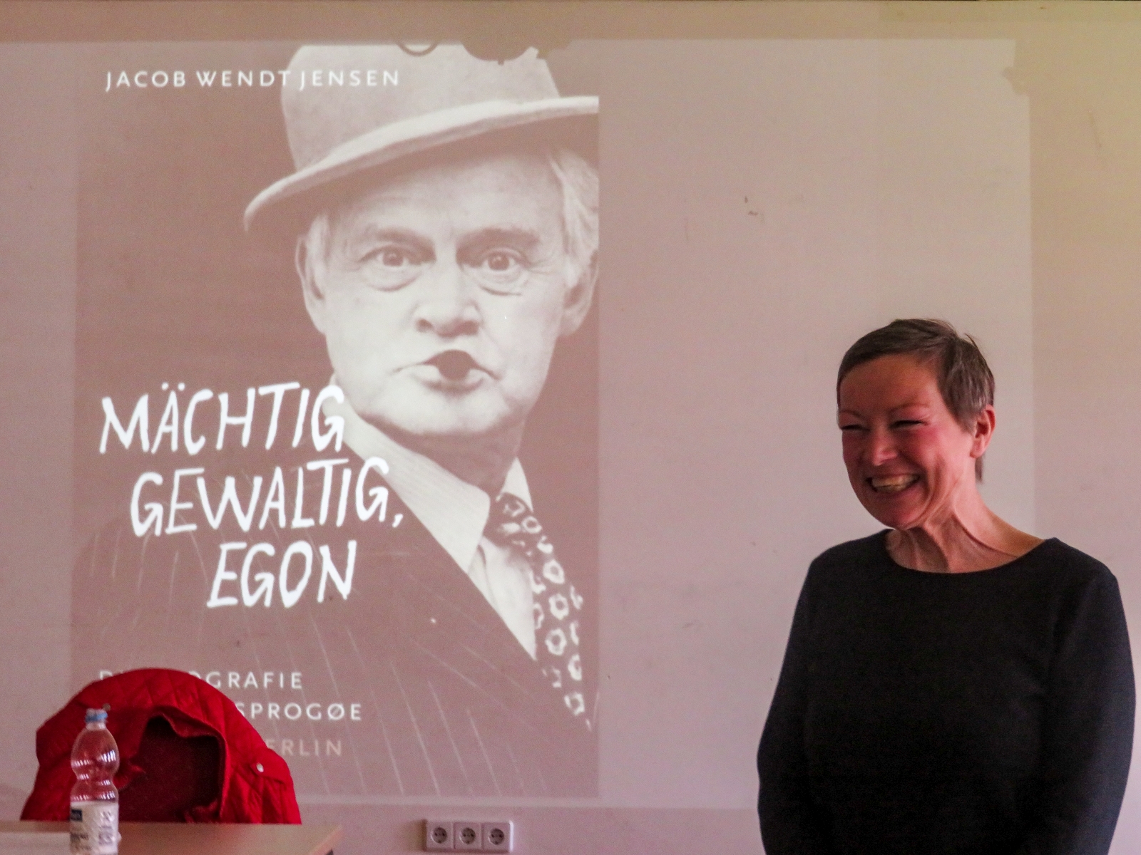 Janine Strahl-Oesterreich, noch vielen bekannt als Fernseh-Moderatorin, nahm ihre Zuhörer mit auf eine Reise in die Zeit der Entstehung der Idee und der zahlreichen Filme. Als Diplom-Skandinavistin, die ausgezeichnet dänisch spricht, hatte sie öfter Gelegenheit die Darsteller hinter den Filmfiguren Egon, Benny und Kjeld kennenzulernen, zu interviewen und auch ihre Biographien ins Deutsche zu übersetzen.