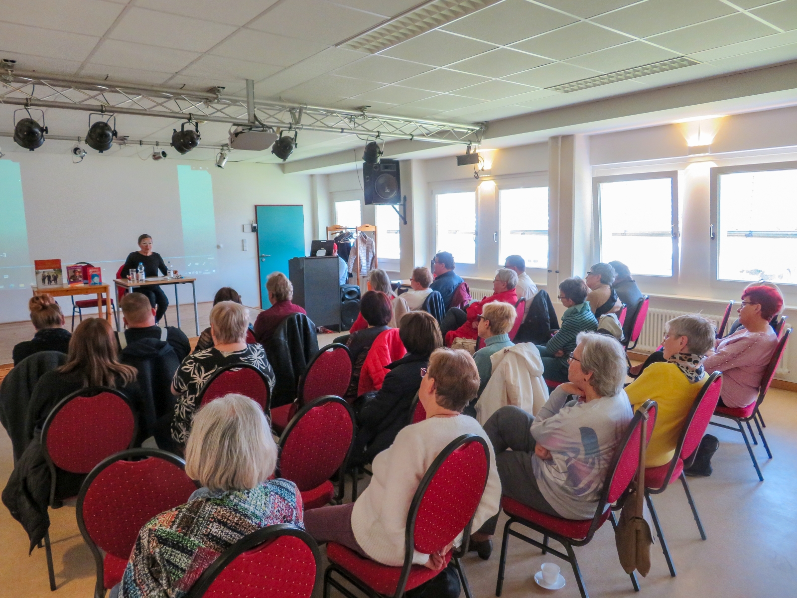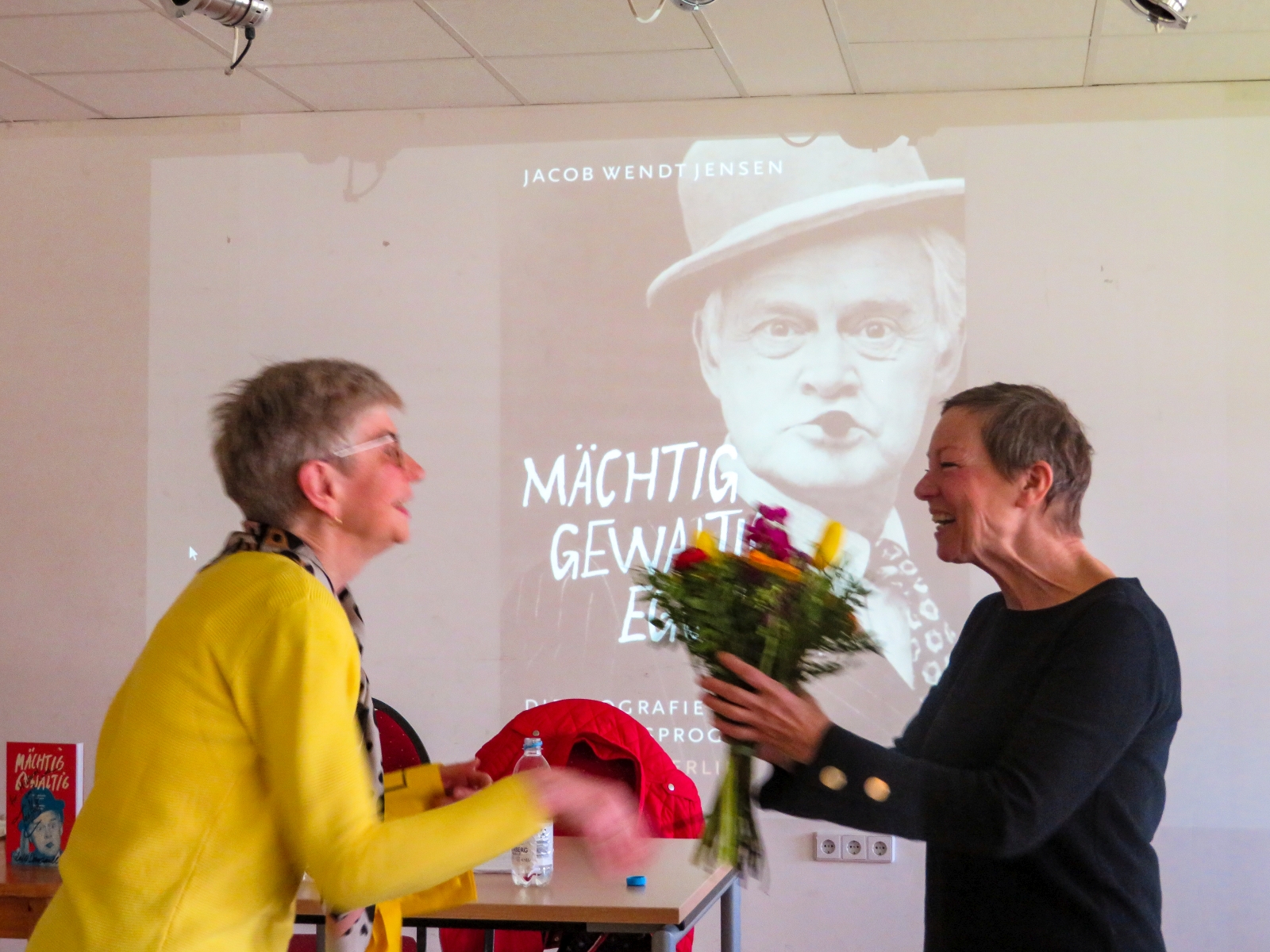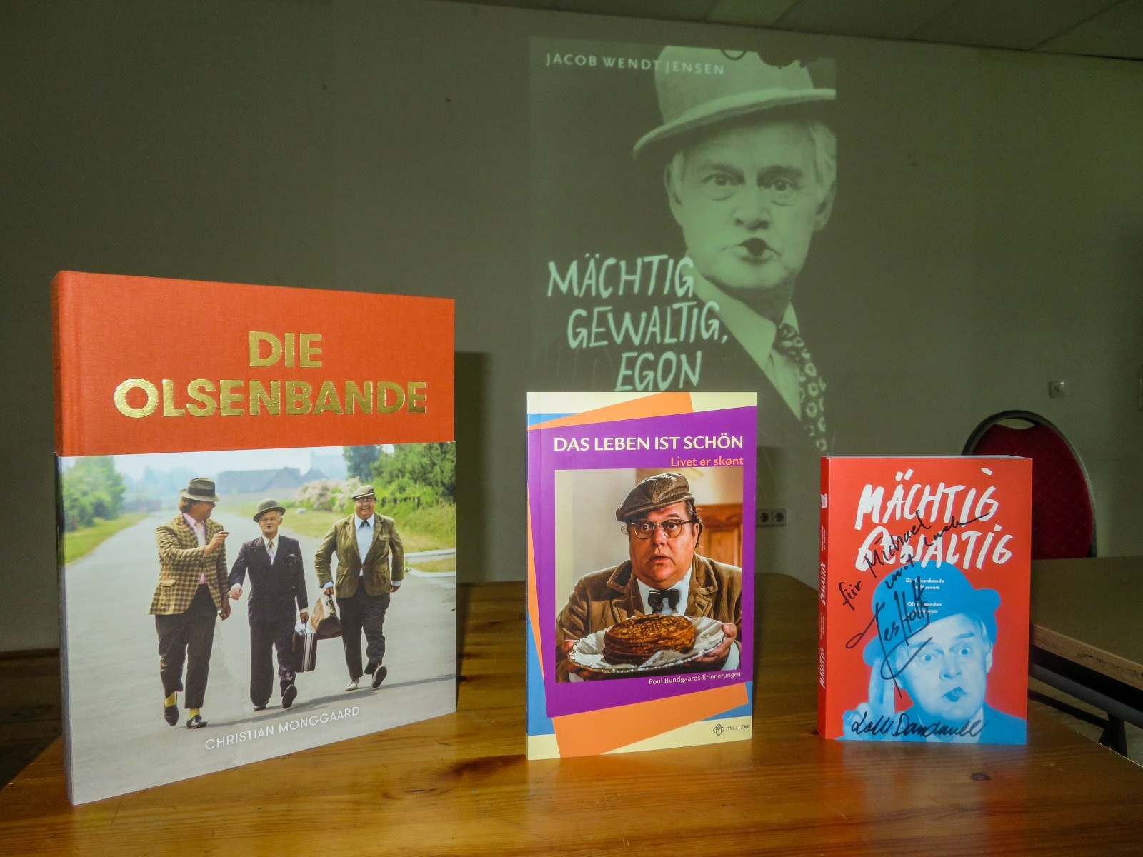 Janine Strahl-Oesterreich, noch vielen bekannt als Fernseh-Moderatorin, nahm ihre Zuhörer mit auf eine Reise in die Zeit der Entstehung der Idee und der zahlreichen Filme. Als Diplom-Skandinavistin, die ausgezeichnet dänisch spricht, hatte sie öfter Gelegenheit die Darsteller hinter den Filmfiguren Egon, Benny und Kjeld kennenzulernen, zu interviewen und auch ihre Biographien ins Deutsche zu übersetzen.
